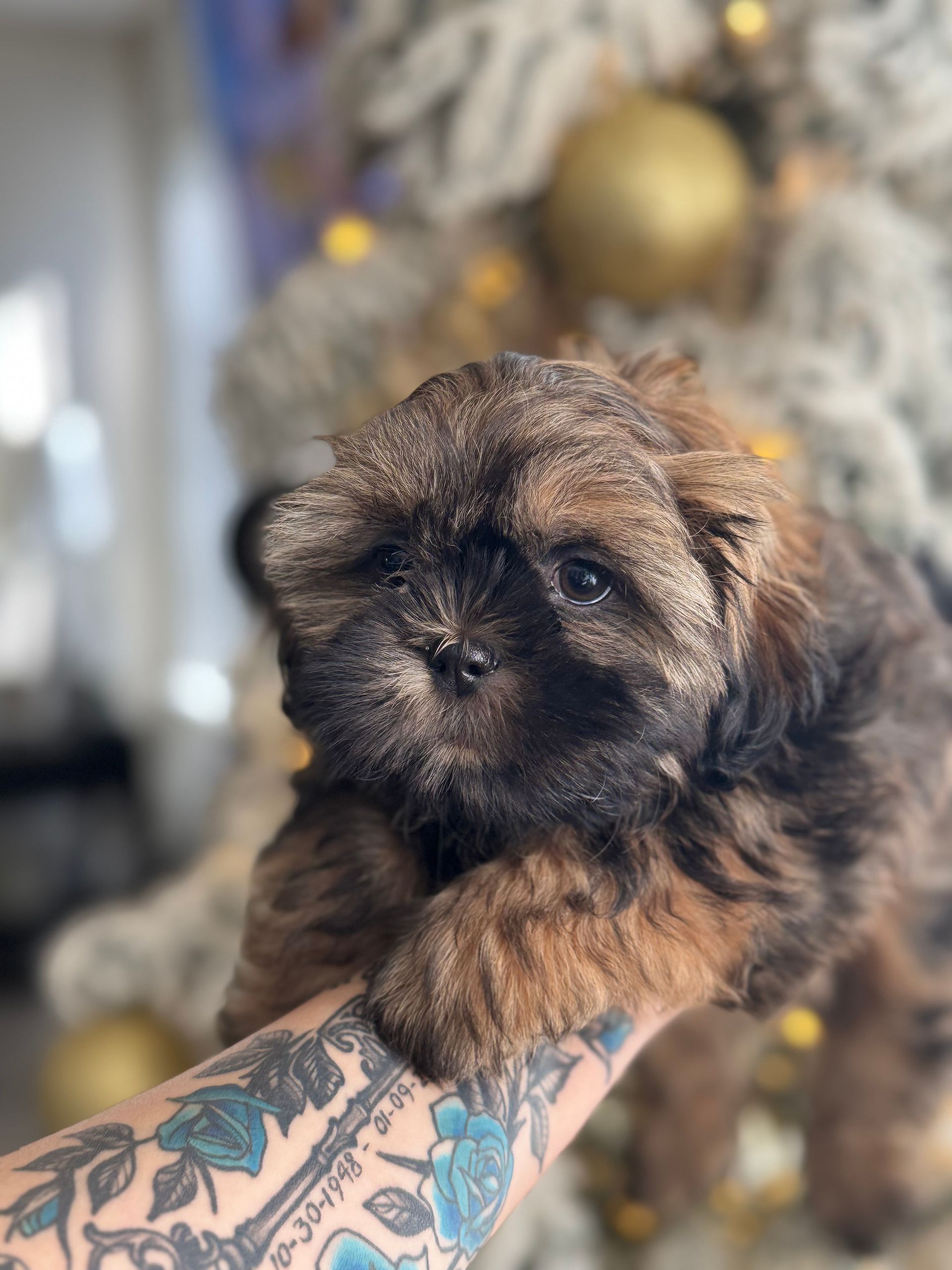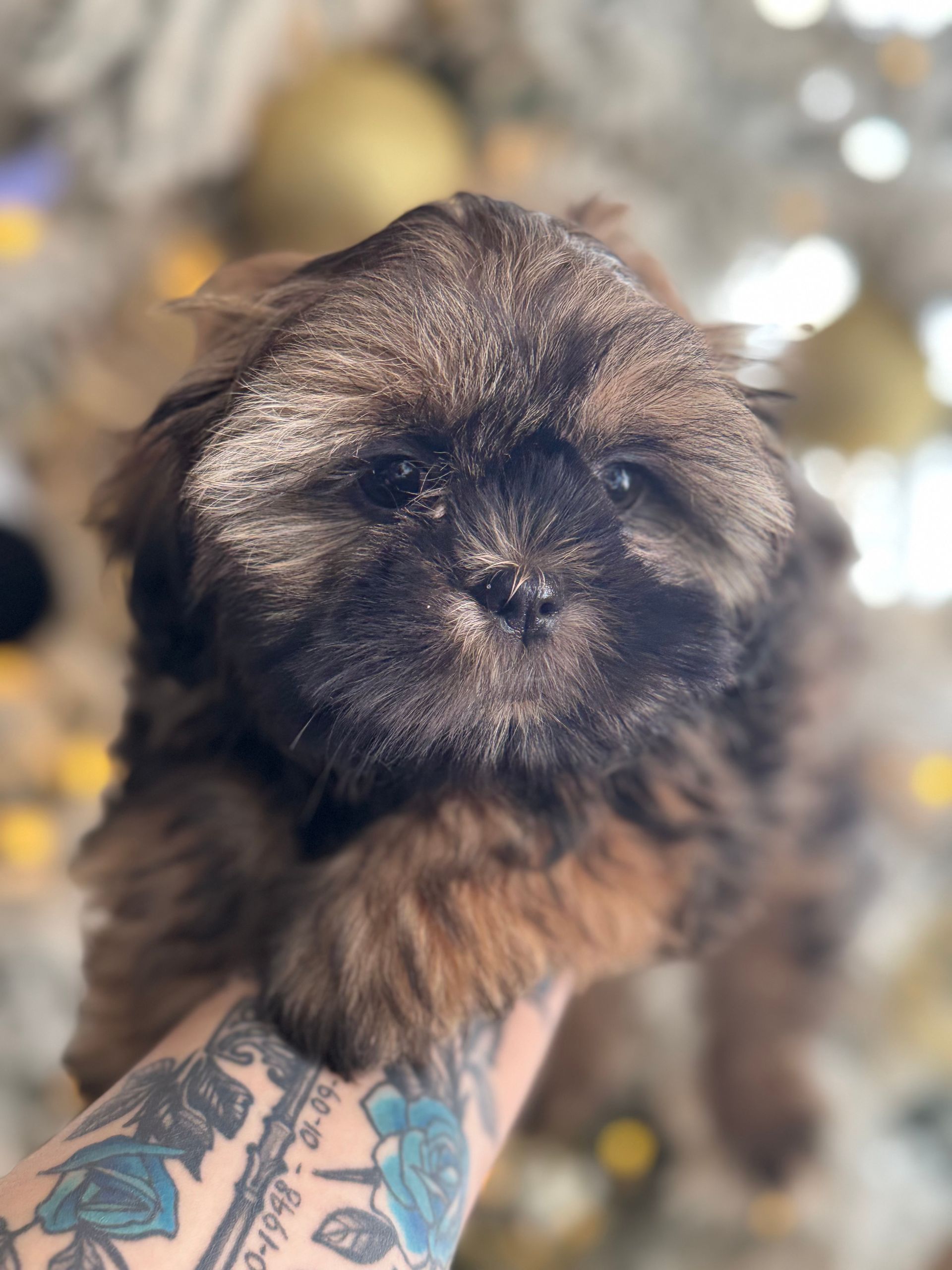 Imperial Shih Tzu he will weigh between 7-9 pounds full grown He is chunky boy and supper sweet and will follow you around like a loving teddy bear.